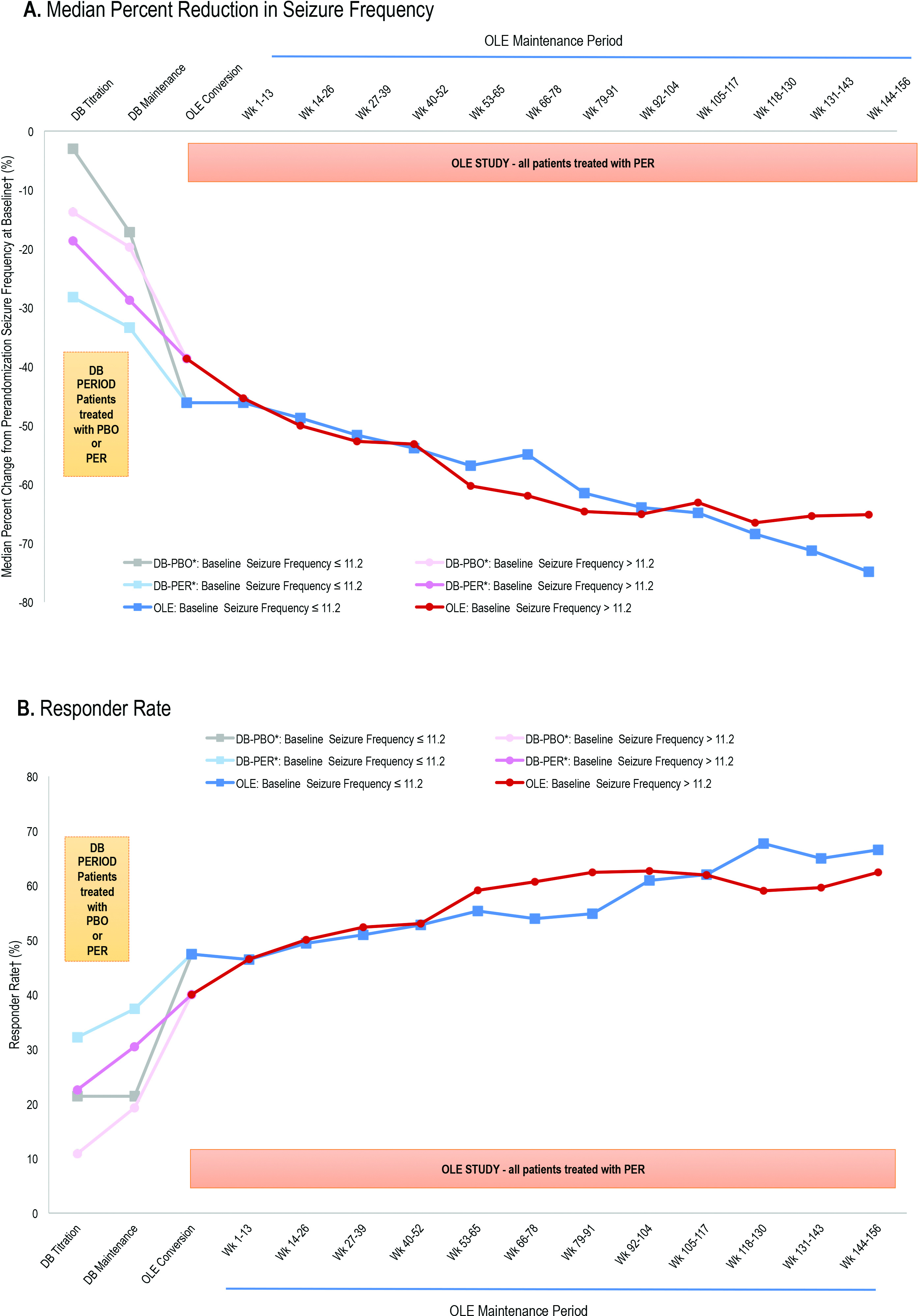 Efficacy of Perampanel by Baseline Seizure Frequency in Patients with Partial Seizures (Phase III Double-Blind Studies)