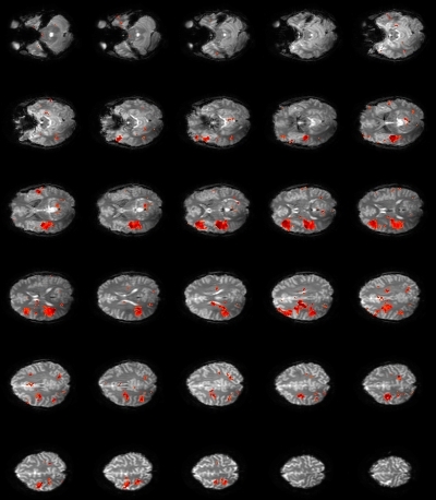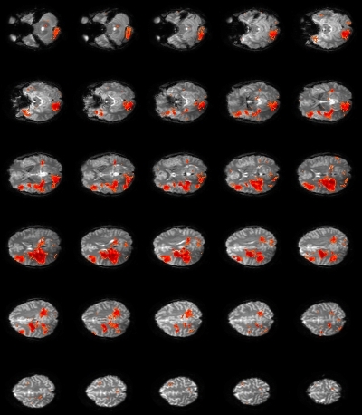 Rationale: Epilepsy diagnosis and treatment benefit from the mapping of interictal epileptiform discharges (IED), which is achieved at much higher spatial resolution with functional MRI than with scalp EEG. In previous studies that use either simultaneous EEG-fMRI (Pittau et al., Neurology 78:1479) or fMRI alone (Khatamian et al., Epilepsy Res 94:177), fMRI signal analysis is based on amplitude increases in each voxel, which represent increased neural activities during IED. However, IED are also accompanied by increased neural synchronization across a local area (e.g. 6-20 cm2) surrounding the IED (Wennberg et al., Clin Neurophys 122:1295). This encouraged us to develop new fMRI analysis paradigms based on the increase in synchronization of fMRI signals across voxels within a local area during IED. Such synchronization can be measure by local degree centrality (LDC), a network metric of local functional connectivity (Sepulcre et al., PLoS Comp Biol 6:e1000808).Methods: One-hour simultaneous scalp EEG (32 channels) and whole-brain fMRI (resolution: 3 mm, 2.5 s) data were acquired from 5 patients with focal epilepsy, and pre-processed using steps similar to that in previous studies. For IED mapping that uses EEG, fMRI data of 20 s duration around each IED event identified from EEG were stitched together into an IED-containing time segment, and IED-absent time segments of the same duration were constructed for comparison. LDC was computed for each time segment and each voxel as the sum of the fMRI signal correlation coefficients between this voxel and all voxels within 1.4 cm distance (i.e. an area of > 6 cm2). The statistical significance (z-score) of LDC difference between IED-containing and IED-absent time segments was mapped. For IED mapping without EEG, LDC was computed for segments of 40 s duration slid across time, effectively creating a time series of LDC values for each voxel. Using cluster analysis (Khatamian et al.), voxel clusters that have the maximum LDC value at the same time were isolated and then inspected visually to identify the cluster most likely associated with IED.Results: For mapping that utilizes EEG, focal regions with significant LDC increases during IED were identified in all 5 patients, and their locations were concordant with EEG. Figure 1 shows the LDC z-score map in a patient with EEG spikes in left temporal lobe. The LDC-based approach performed better than the conventional EEG-fMRI method, which failed to identify concordant activation regions in 2 of the 5 patients who had relatively fewer events. For mapping without EEG, the LDC-based approach identified concordant voxel clusters in 3 patients, again with better performance than the conventional method. The resultant map (Figure 2) is often less specific than when using EEG and involves resting-state networks unrelated to IED, consistent with previous studies.Conclusions: The new method based on local fMRI signal synchronization is at least as effective in mapping interictal activities as the conventional methods based on signal amplitude, both when using simultaneous EEG to identify IED events and when without EEG.