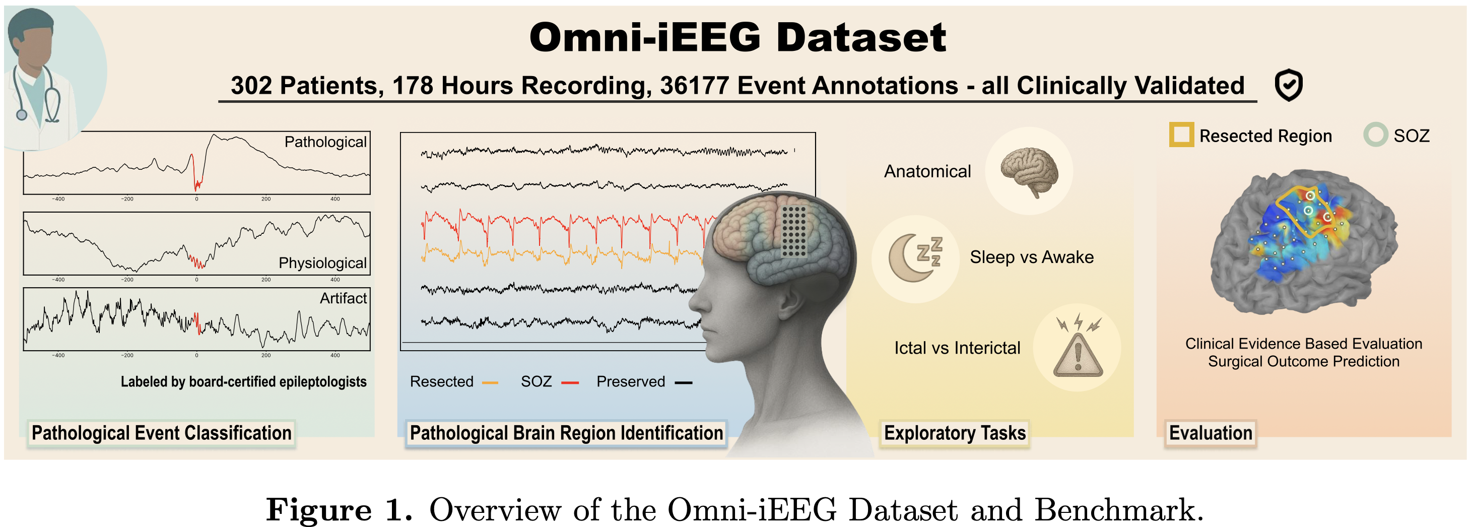 Omni-iEEG is a publicly released, BIDS-compliant dataset and benchmark designed to bridge the machine learning and clinical communities. It integrates expert-labeled biomarkers and standardized, clinically meaningful tasks to enable reproducible iEEG research. A full utility library is provided to support reproducible benchmarking and clinical research.Funding: the National Institute of Neurological Disorders and Stroke (NINDS) K23NS128318