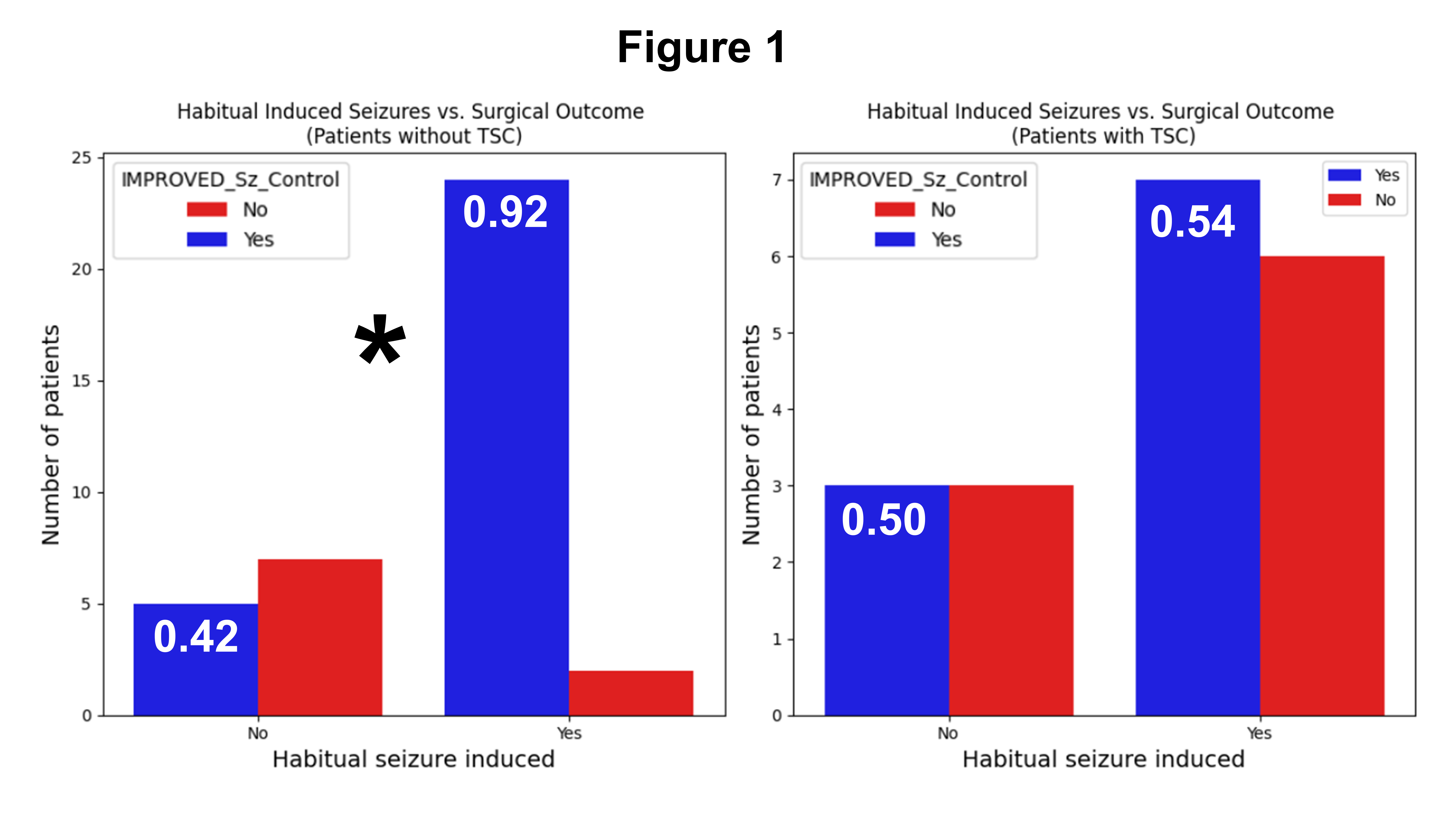 In pediatric DRE, induced seizures have prognostic relevance for surgical outcomes. Interpretation depends on whether or not a patient has TSC. For children without TSC, failure to induce a habitual electroclinical seizure during ESIS may represent a red flag for surgical planning, consistent with work in adults2.  For patients with TSC, discordance between induced seizures and other data informing surgical planning may represent a red flag. These findings may catalyze wider use and more accurate interpretation of ESIS in children with DRE.