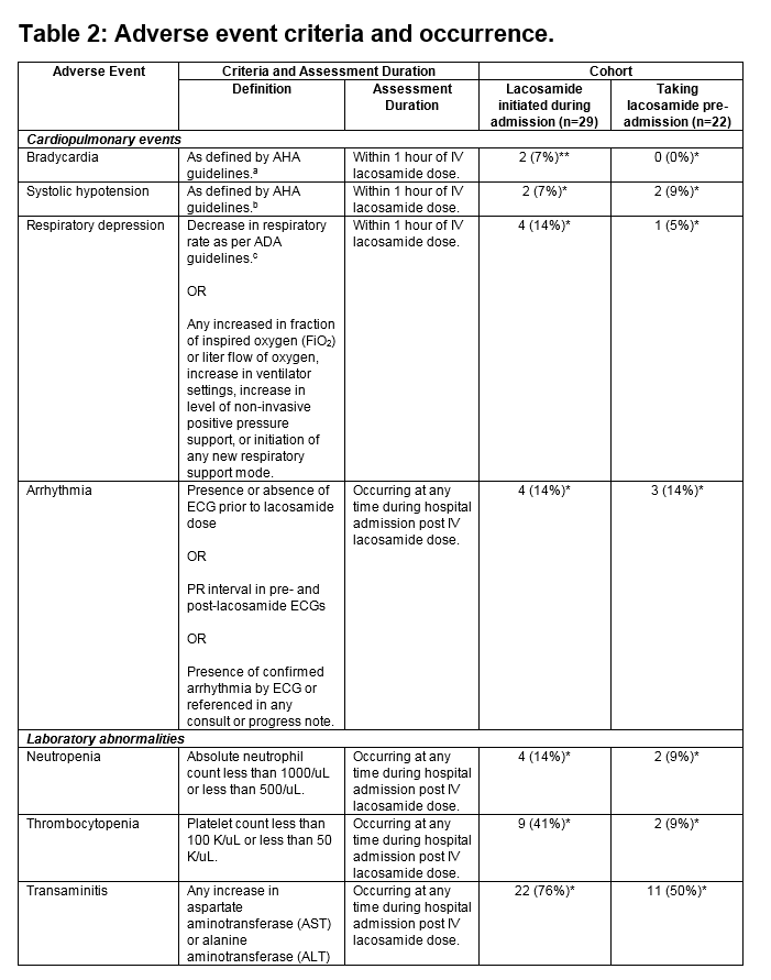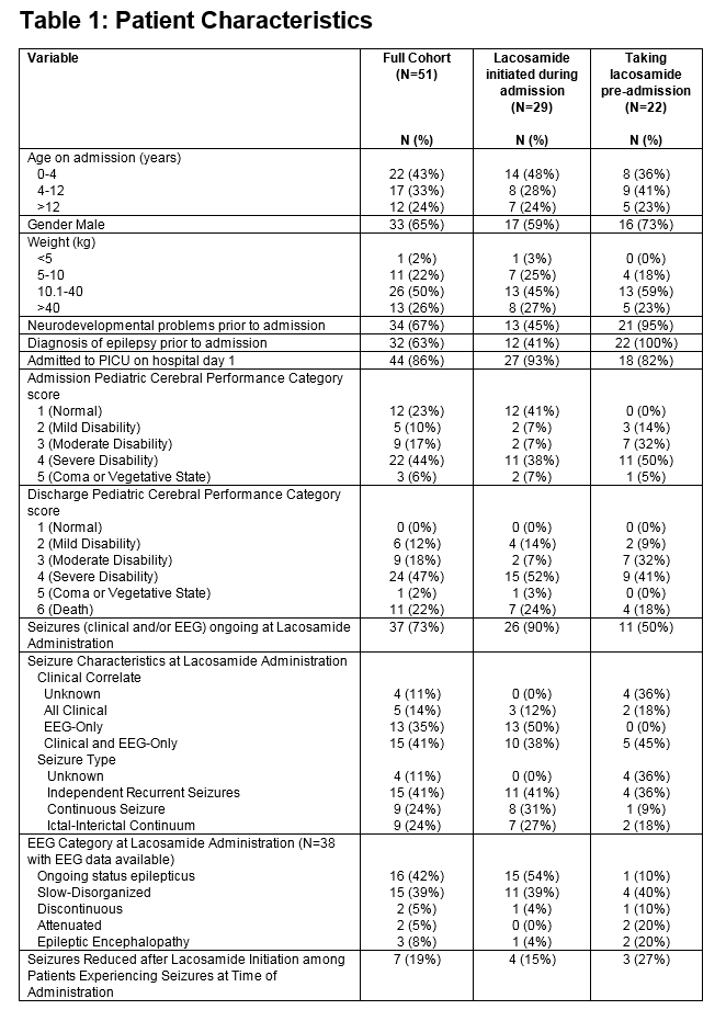 Rationale: Acute seizures are common in critically ill children. These patients would benefit from intravenous anti-seizure medications with few adverse effects. We reviewed the usage and effects of intravenous lacosamide in critically ill children. Methods: This is a single-center retrospective case series of consecutive patients admitted to the pediatric intensive care unit at a quaternary care pediatric hospital from 4/11 – 2/16 administered IV lacosamide for treatment of seizures. This cohort was separated into those with new lacosamide initiation and those who continued outpatient lacosamide. Dosing and prescribing practices were reviewed. Adverse effects (cardiopulmonary events, and lab abnormalities) were defined by set criteria, and most were evaluated during the full admission. Results: Forty-seven patients over 51 intensive care unit admissions were administered IV lacosamide. Twenty-nine (62%) patients had not received lacosamide prior to admission; in this cohort, it was the third or fourth line anti-seizure medication administered for acute seizures or status epilepticus. Adverse effects were only noted in the lacosamide-naïve cohort. One patient experienced bradycardia and one patient experienced a rash that were considered potentially related to lacosamide. No other adverse effects were identified, including no evidence of PR interval prolongation. Conclusions: Lacosamide was well tolerated in critically ill children with acute seizures. Further study is warranted to evaluate the effectiveness of earlier lacosamide use for pediatric status epilepticus and acute seizures. Funding: Investigator Initiated Grant from UCB Pharma
