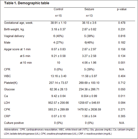 Rationale: Many studies have shown the additive property of cytokines in the immune regulation of secondary injury mechanisms that are not associated with; however, it remains unclear whether these cytokines have a similar effect in the immature human neonatal brain.This study assessed the levels of significant cytokines in relation to neonatal seizures and the severity of neonatal brain insult. Methods: The hypoxic ischemic encephalopathy-induced seizure group consisted of 13 patients, and another 15 normal newborns were enrolled as a control group. We analysed serum cytokines taken within 24hrs of admission, and within 48-72hrs in both groups. The 3rd sample, taken at the 5th day was only obtained in the seizure group. The levels of 10 cytokines(IL-1beta, IL-1Ra, IL-2, IL-3, IL-6, IL-8, IL-10, TNF-alpha, interferon (IFN)-gamma and fibroblast growth factor (FGF)-2) were measured each time and analyzed quantitatively. Results: During neonatal seizures, the levels of most cytokines increased within 24 h, and, in particular, the levels of interleukin (IL)-8 significantly increased (P < 0.05). After 48-72 h of seizure onset, the levels of most cytokines decreased, especially, IL-1Ra; however, IL-8 and IL-10 remained increased (P < 0.05). During the prognosis, one patient who was diagnosed with quadriplegic cerebral palsy at 6 months of age presented extreme elevation of IL-1beta, IL-1Ra, IL-6, IL-8, IL-10 and tumor necrosis factor-alpha in the initial sample, reflecting the severity of brain damage. Conclusions: A significant increase in IL-8 may serve as a biomarker for earlier detection of brain damage in neonatal seizure, if detected within 24 and 48-72 h of the seizure. Funding: No funding